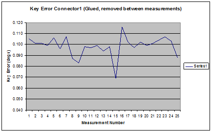 Conclusions It is clear from comparing these 2 connectors from different manufactures that there are different tolerances on the key width and the key slot on the inner hub of the ferrule. In the case of connector 2 it is clear that the variability in the apex is due to the error in the key as the 2 graphs track each other very clearly. Connector1 has a tolerance on the key width that is similar to the APC plate used on the equipment. Once connector1 was glued in place to stop the ferrule floating the graphs clearly show that the difference in measurements are purely due to small movements of the key in the plate used to key the connector. Again the key error graph closely tracks the apex offset graph. Angle of polish is very repeatable and does not seem to be a source of apex variation. Tolerances in the connector appear to be a major issue in apex repeatability for APC connectors. The floating ferrule design will also lead to large differences in key error (apex offset) if the ferrule does not assume the same position relative to the key on the outer housing after being mated, polished or cleaned.